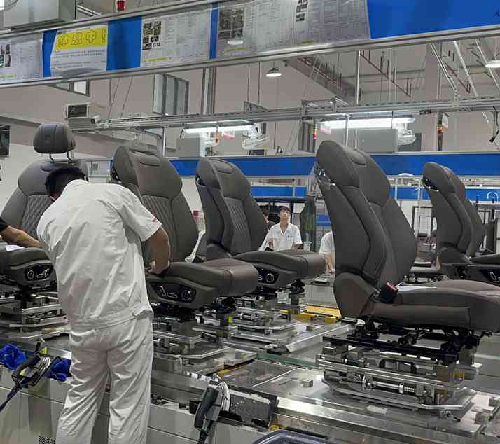 The automobile seat assembly line achieves efficient and high-quality automated production by integrating framework/padding assembly robots, various comfort adjustment devices, safety systems, and quality inspection equipment, all coordinated by an automated control system.